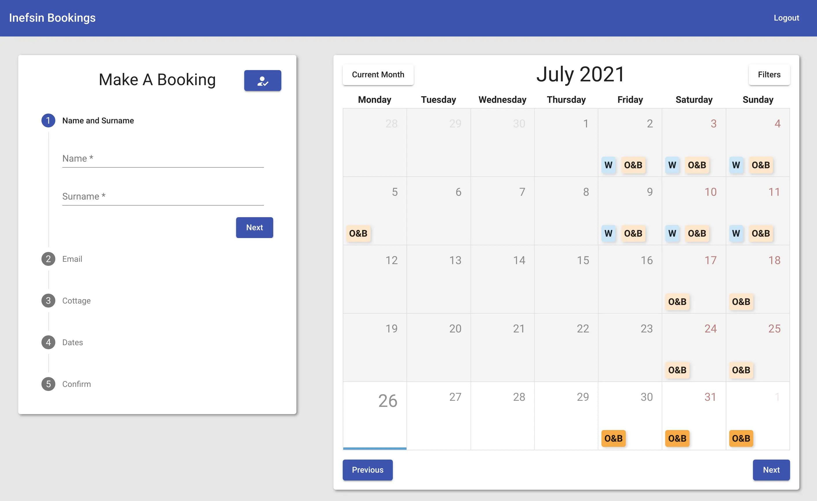 This project was developed for the Inefsin fishing syndicate, to allow members to book cottages online. Members can log in to the website to view available dates on the calendar, and submit booking requests.